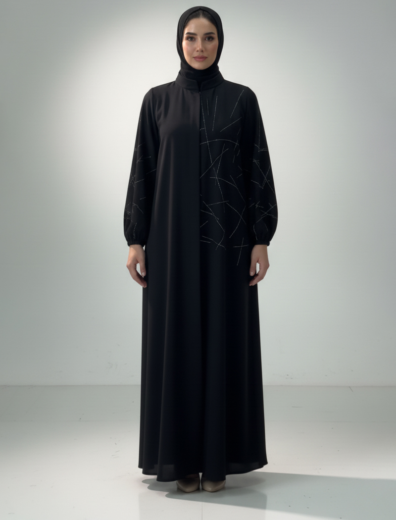 Brand : Alzeena Color : Black Fabric : Dubai Cherry Fabric Fitting : Free-flowing Available Sizes -- (Size 52) (Size 54) (Size 56)